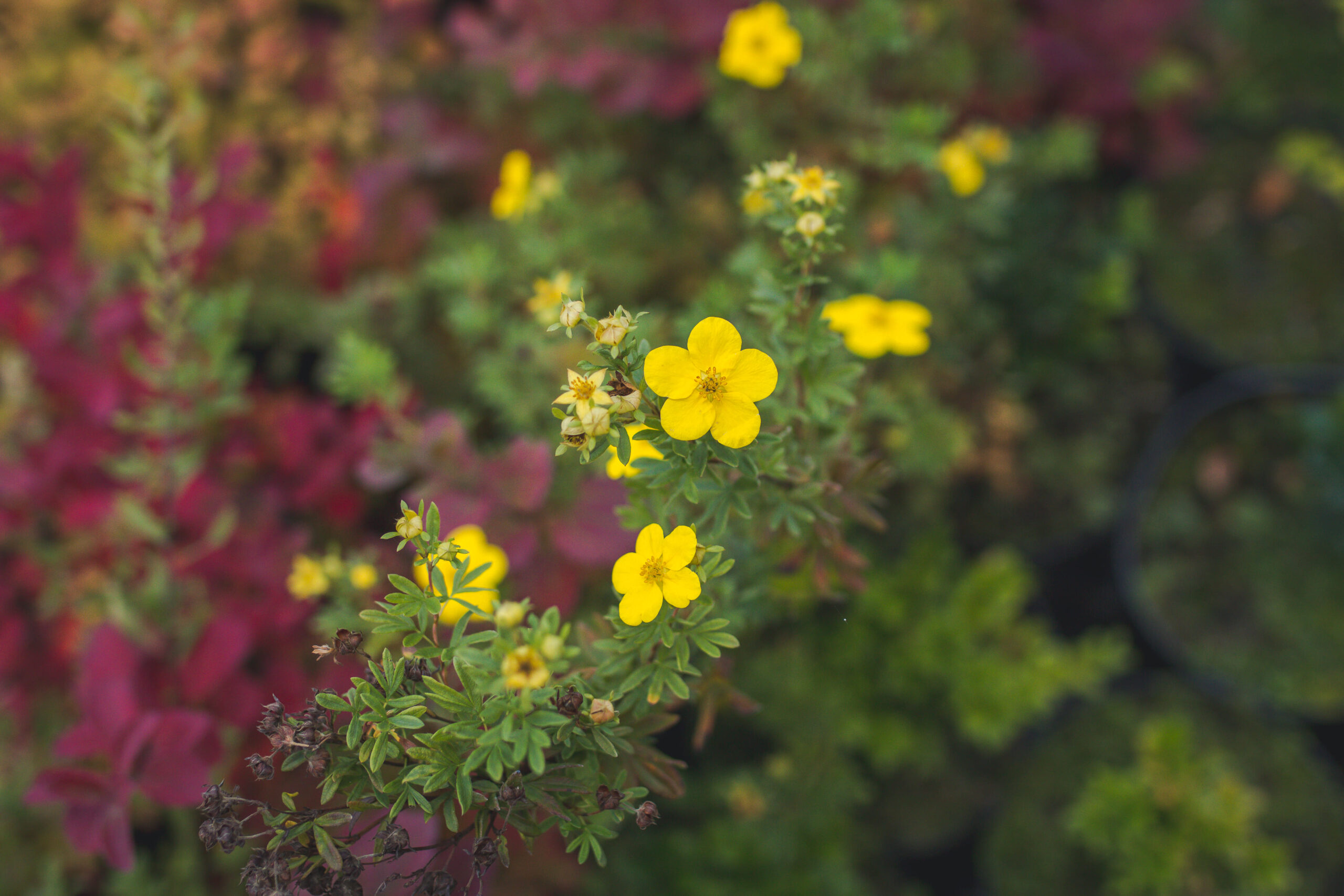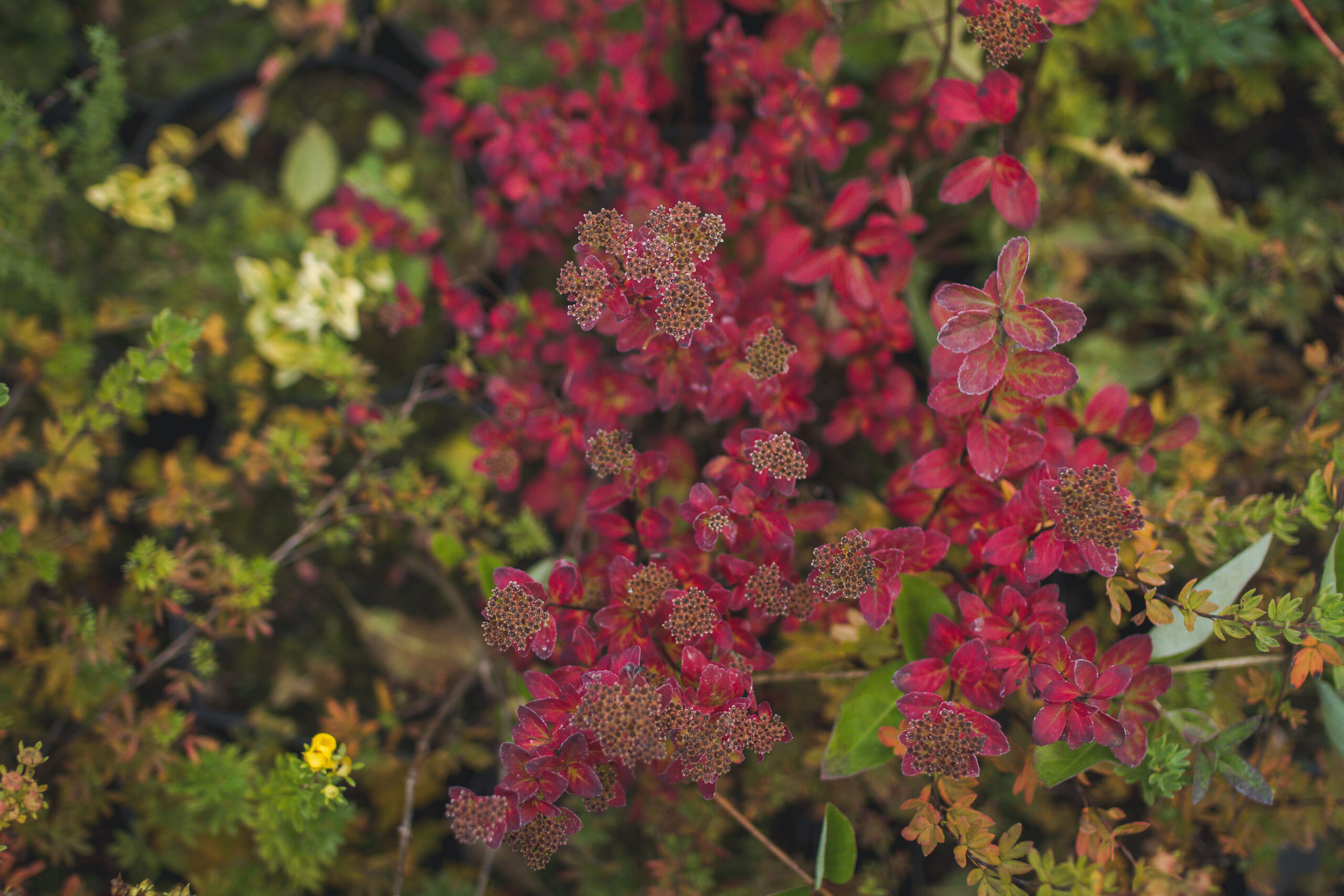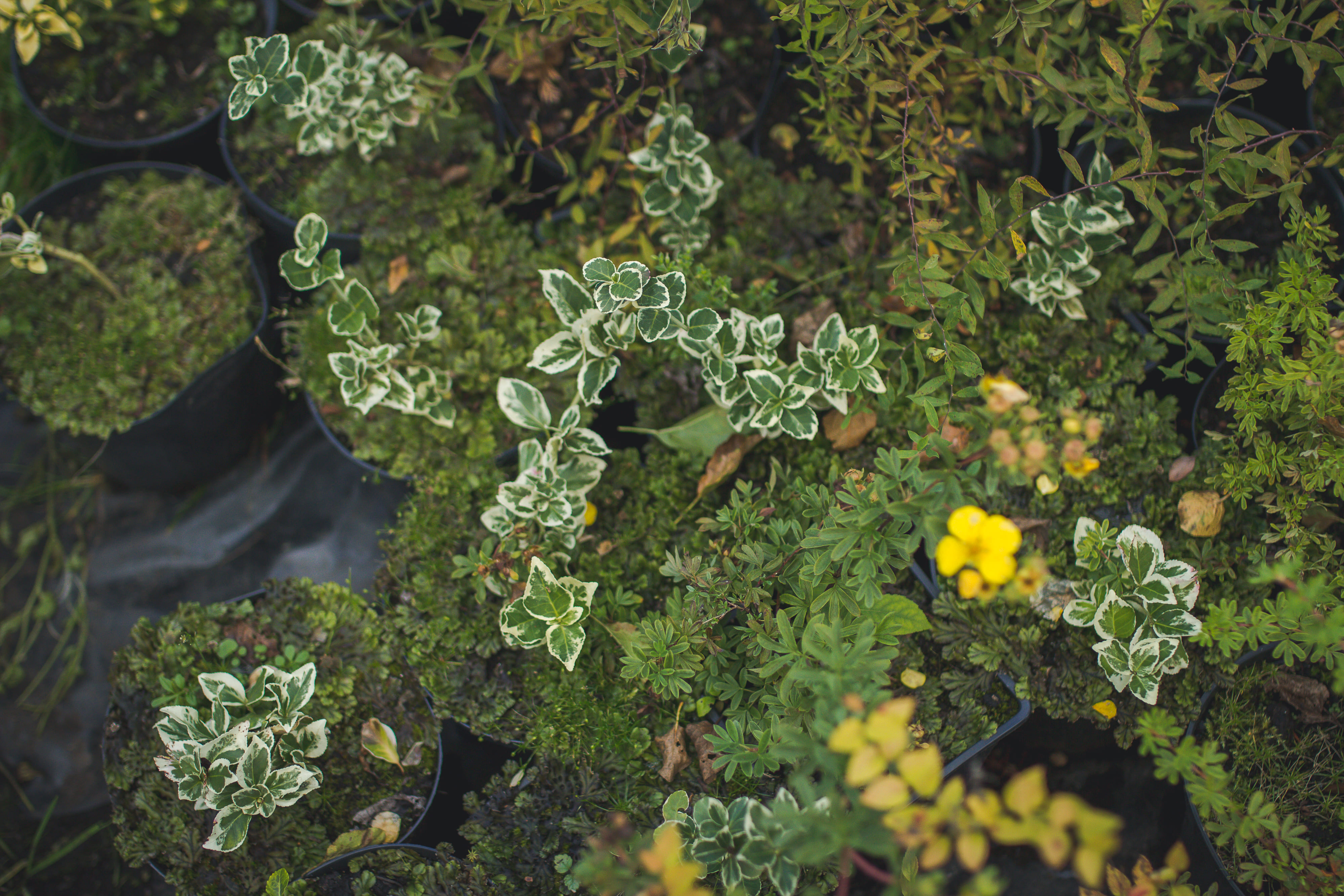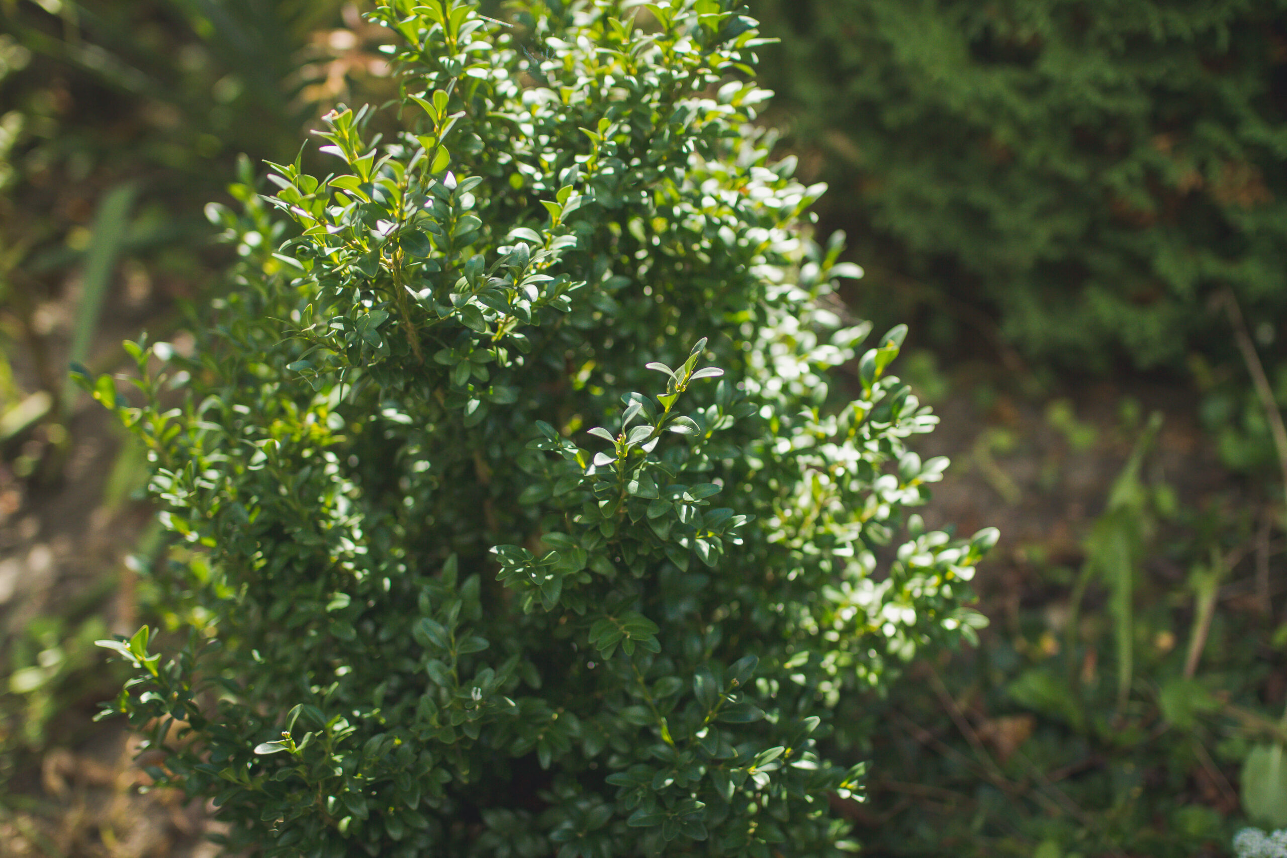 Лиственные: гортензии, самшит, вейгела, лапчатка, форзиция, пахисандра, ивы (4 вида), пузыреплодник, бересклет, плющ, спиреи.